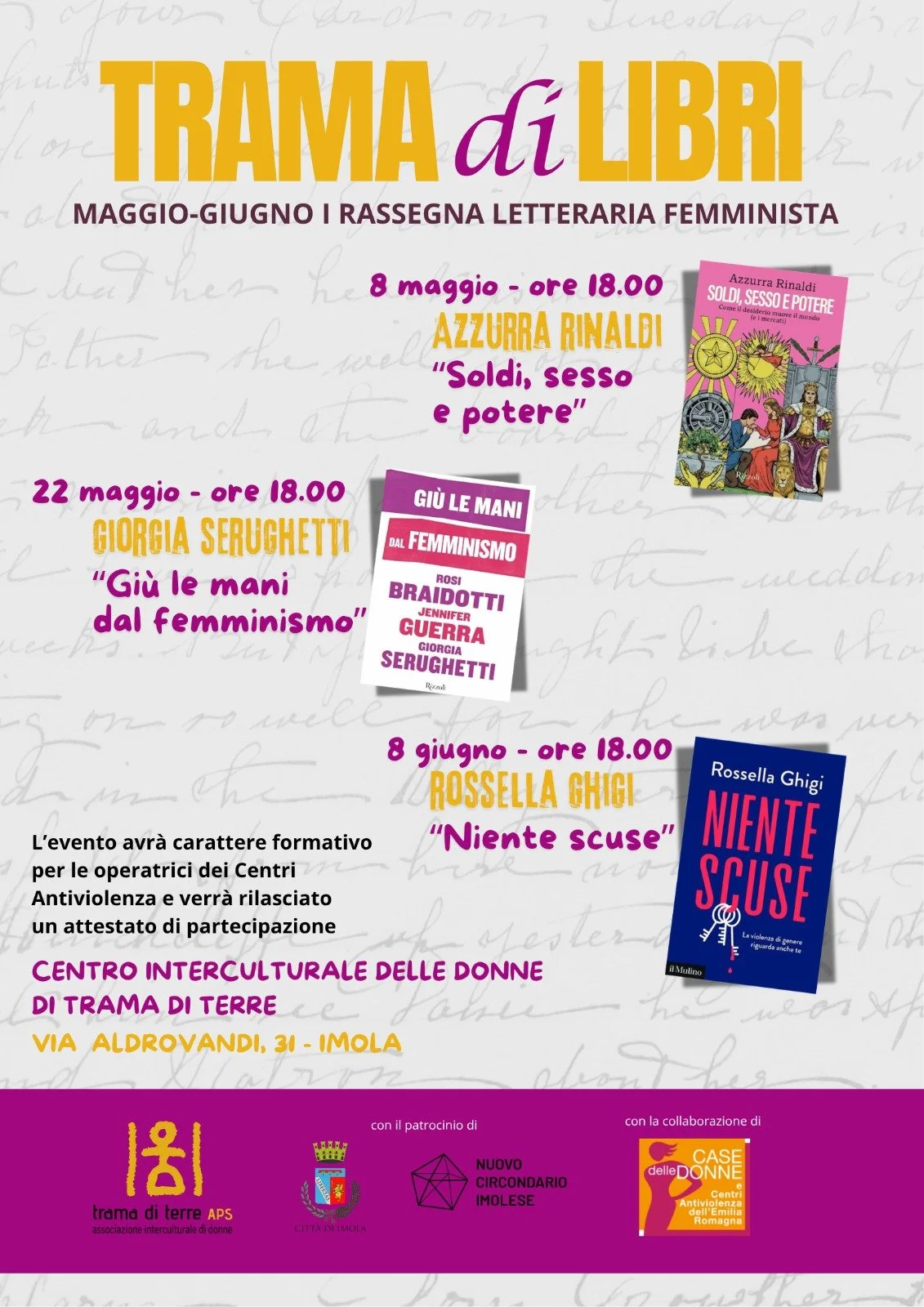 TRAMA di LIBRI - "Giù le mani dal femminismo", Rizzoli - Incontro con l'autrice Giorgia Serughetti venerdì 22 maggio 2026 18:00 20:00 Trama di Terre APS 31 Via Aldrovandi Imola, Emilia-Romagna, 40026 Italia (mappa) Google Calendar ICS